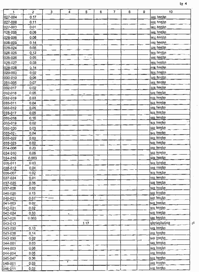 4. Ընդունել ի գիտություն Հայաստանի Հանրապետության Արագածոտնի մարզի Կարբիի գյուղական համայնքի հողային ֆոնդի առկայության և բաշխման մասին հաշվետվությունը` 2005 թվականի հունվարի 1-ի դրությամբ` համաձայն NN 8 և 9 հավելվածների: