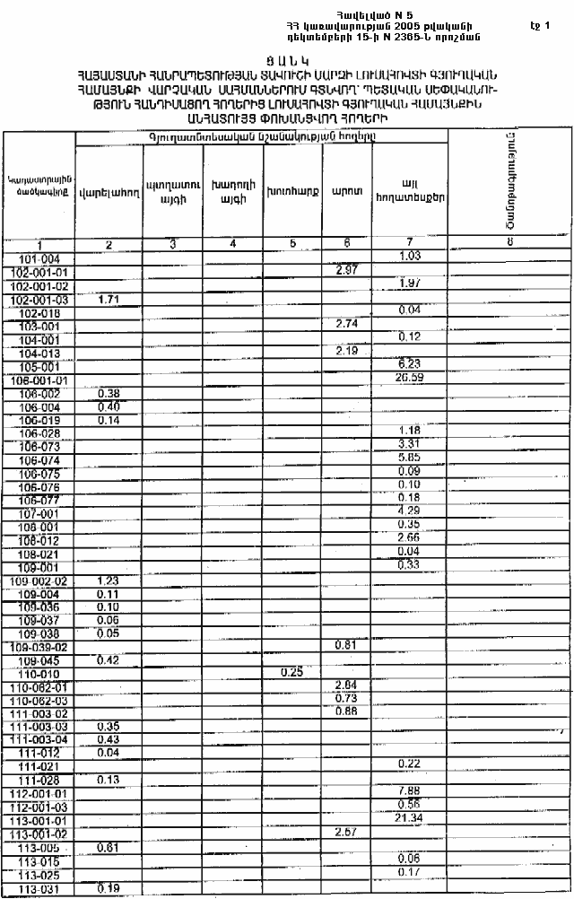 15 դեկտեմբերի 2005 թվականի N 2365-Ն