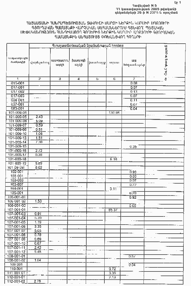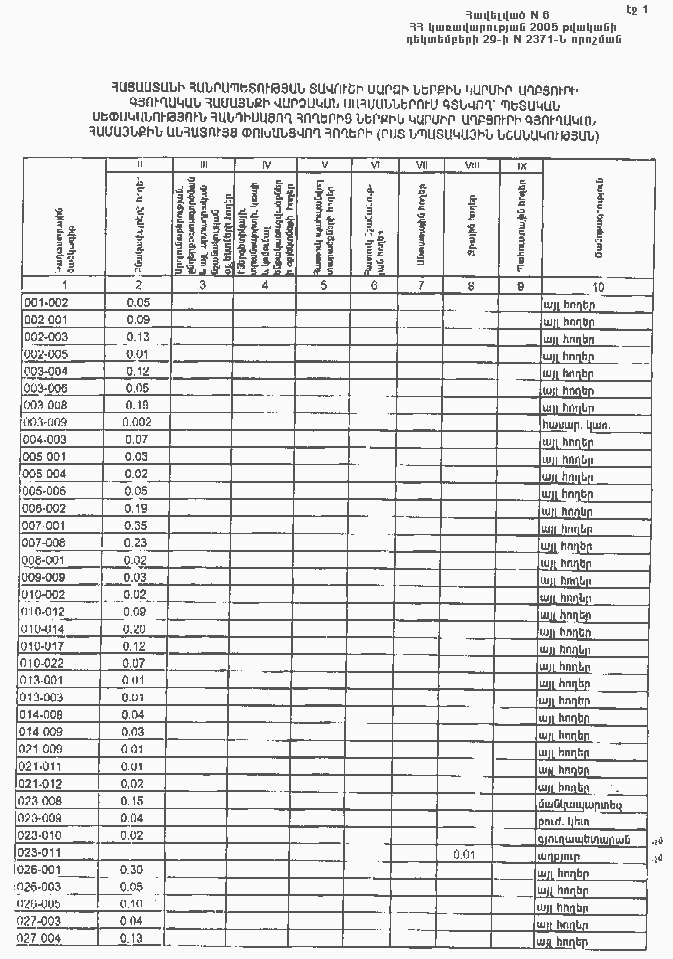 29 դեկտեմբերի 2005 թվականի N 2371-Ն