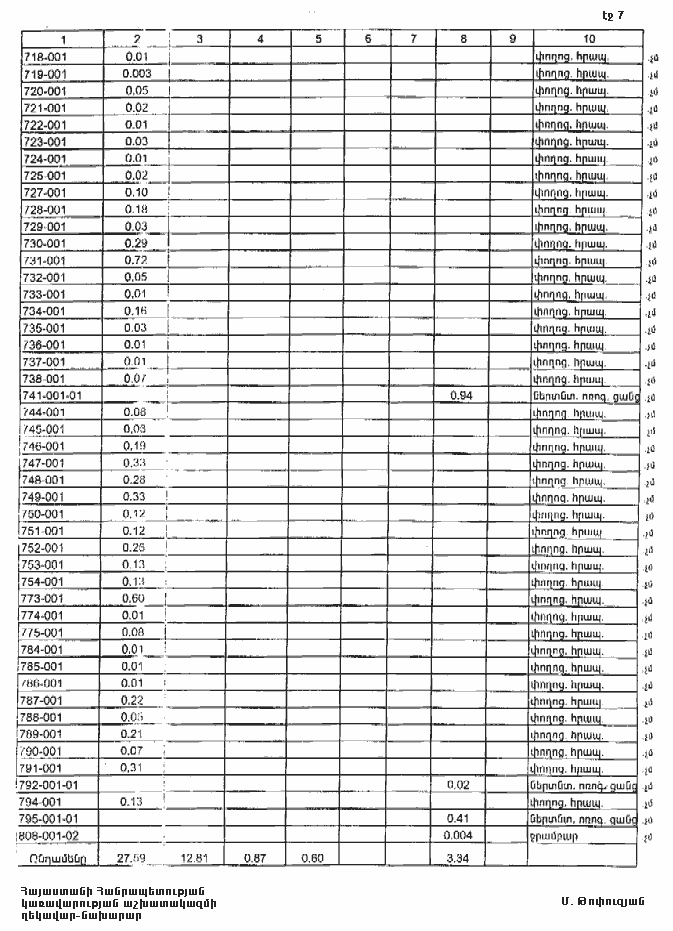 7. Հայաստանի Հանրապետության Տավուշի մարզպետին՝ Հայաստանի Հանրապետության կառավարության 2000 թվականի հոկտեմբերի 23-ի N 656 որոշմամբ սահմանված կարգով՝ սկզբնական հաշվառման տվյալների հիման վրա ապահովել մարզի տարածքում ընթացիկ հաշվառման աշխատանքների իրականացումը: