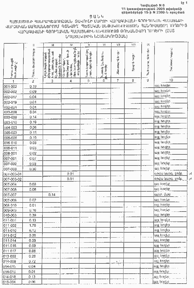 15 դեկտեմբերի 2005 թվականի N 2380-Ն