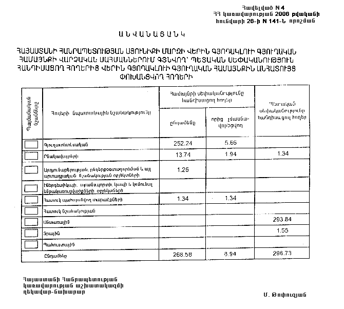 26 հունվարի 2006 թվականի N 141-Ն