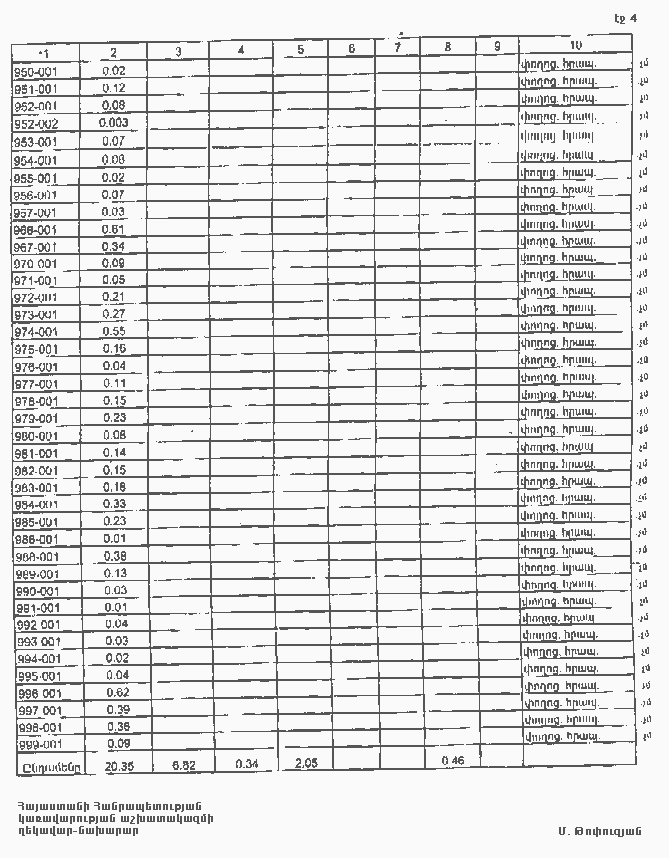 4. Ընդունել ի գիտություն Հայաստանի Հանրապետության Արագածոտնի մարզի Լուսագյուղի գյուղական համայնքի հողային ֆոնդի առկայության և բաշխման մասին հաշվետվությունը՝ 2005 թվականի հունվարի 1-ի դրությամբ՝ համաձայն NN 8 և 9 հավելվածների: