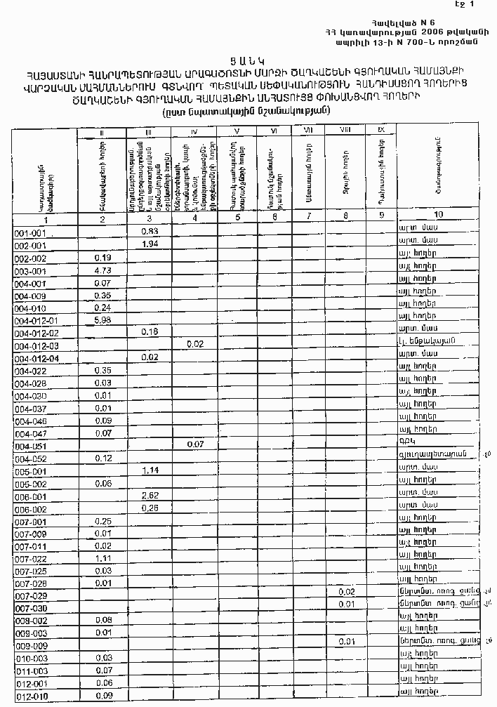 13 ապրիլի 2006 թվականի N 700-Ն