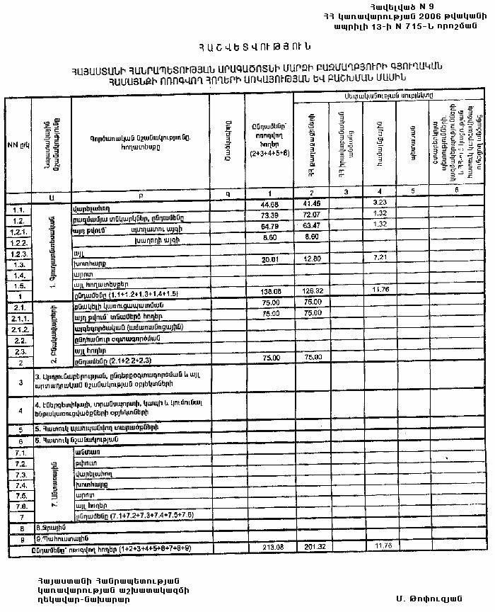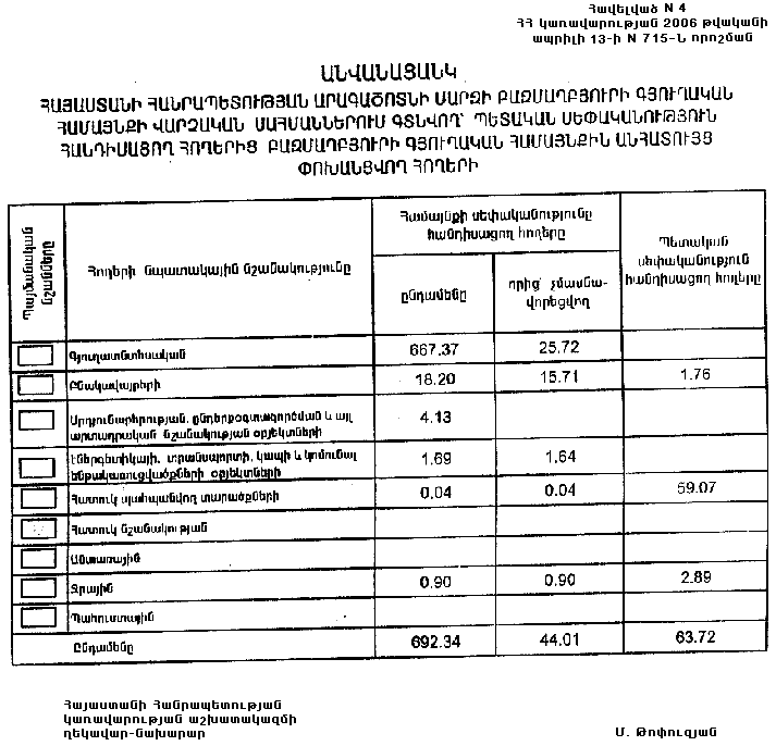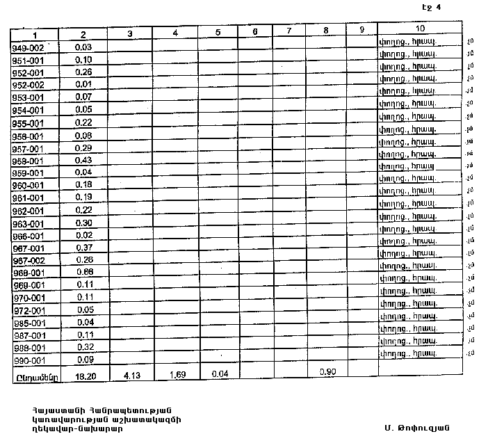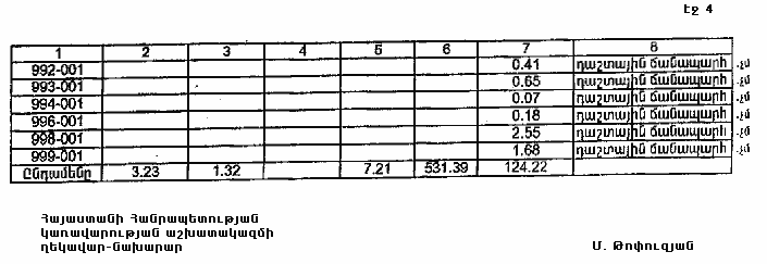 4. Ընդունել ի գիտություն Հայաստանի Հանրապետության Արագածոտնի մարզի Բազմաղբյուրի գյուղական համայնքի հողային ֆոնդի առկայության և բաշխման մասին հաշվետվությունը` 2005 թվականի հունվարի 1-ի դրությամբ` համաձայն NN 8 և 9 հավելվածների:
