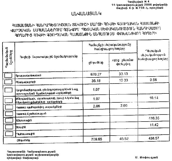 4. Ընդունել ի գիտություն Հայաստանի Հանրապետության Տավուշի մարզի Հովքի գյուղական համայնքի հողային ֆոնդի առկայության և բաշխման մասին հաշվետվությունը` 2006 թվականի հունվարի 1-ի դրությամբ` համաձայն NN 8 և 9 հավելվածների: