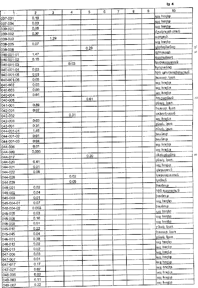 4. Ընդունել ի գիտություն Հայաստանի Հանրապետության Շիրակի մարզի Աշոցքի գյուղական համայնքի հողային ֆոնդի առկայության և բաշխման մասին հաշվետվությունը` 2005 թվականի հունվարի 1-ի դրությամբ` համաձայն N 8 հավելվածի: