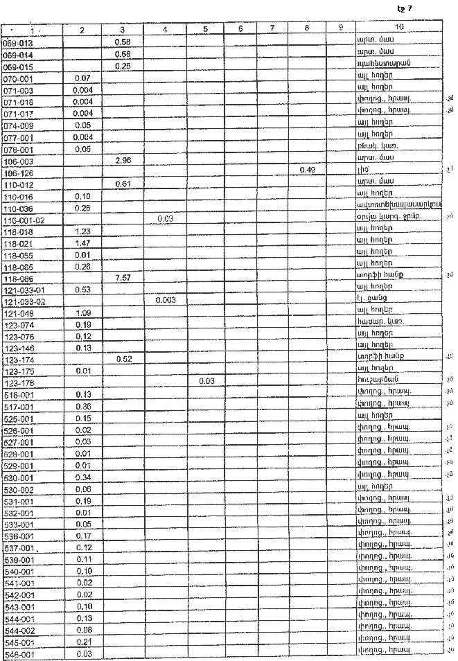 7. Հայաստանի Հանրապետության Շիրակի մարզպետին` Հայաստանի Հանրապետության կառավարության 2000 թվականի հոկտեմբերի 23-ի N 656 որոշմամբ սահմանված կարգով` սկզբնական հաշվառման տվյալների հիման վրա ապահովել մարզի տարածքում ընթացիկ հաշվառման աշխատանքների իրականացումը: