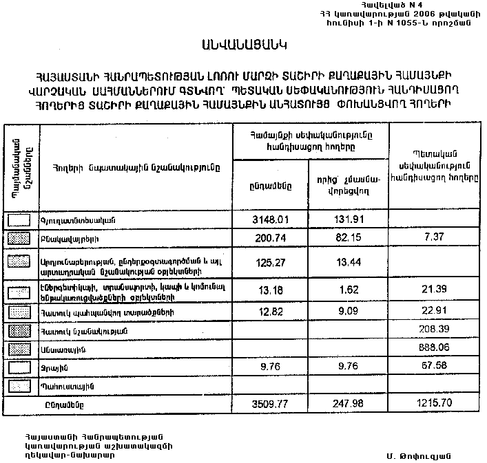 ՀԱՅԱՍՏԱՆԻ ՀԱՆՐԱՊԵՏՈՒԹՅԱՆ ԼՈՌՈՒ ՄԱՐԶԻ ՏԱՇԻՐԻ ՔԱՂԱՔԱՅԻՆ ՀԱՄԱՅՆՔԻ ՎԱՐՉԱԿԱՆ ՍԱՀՄԱՆՆԵՐՈՒՄ ԳՏՆՎՈՂ` ՊԵՏԱԿԱՆ ՍԵՓԱԿԱՆՈՒԹՅՈՒՆ ՀԱՆԴԻՍԱՑՈՂ ՀՈՂԵՐԻՑ ՏԱՇԻՐԻ ՔԱՂԱՔԱՅԻՆ ՀԱՄԱՅՆՔԻՆ ԱՆՀԱՏՈՒՅՑ ՓՈԽԱՆՑՎՈՂ ՀՈՂԵՐԻ