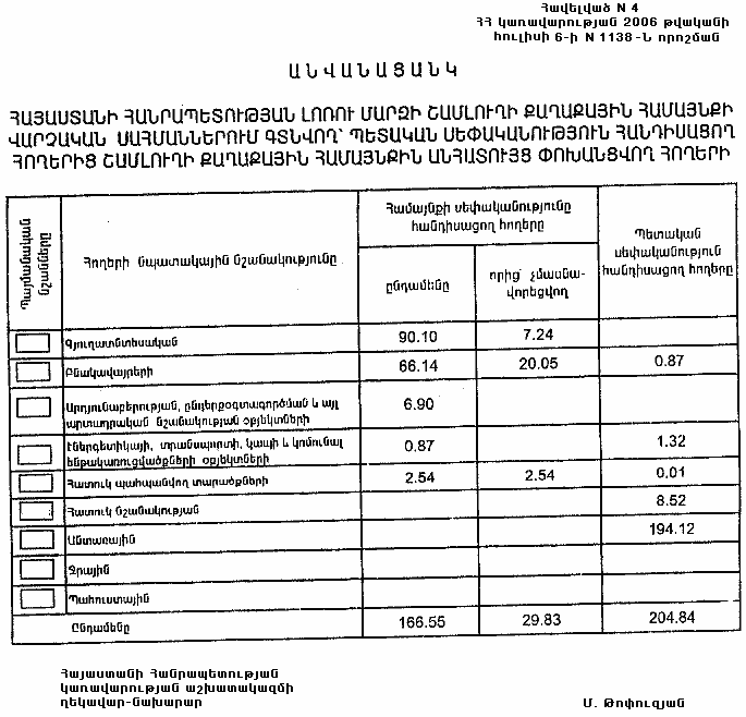 4. Ընդունել ի գիտություն Հայաստանի Հանրապետության Լոռու մարզի Շամլուղի քաղաքային համայնքի հողային ֆոնդի առկայության և բաշխման մասին հաշվետվությունը` 2005 թվականի հունվարի 1-ի դրությամբ` համաձայն N 8 հավելվածի: