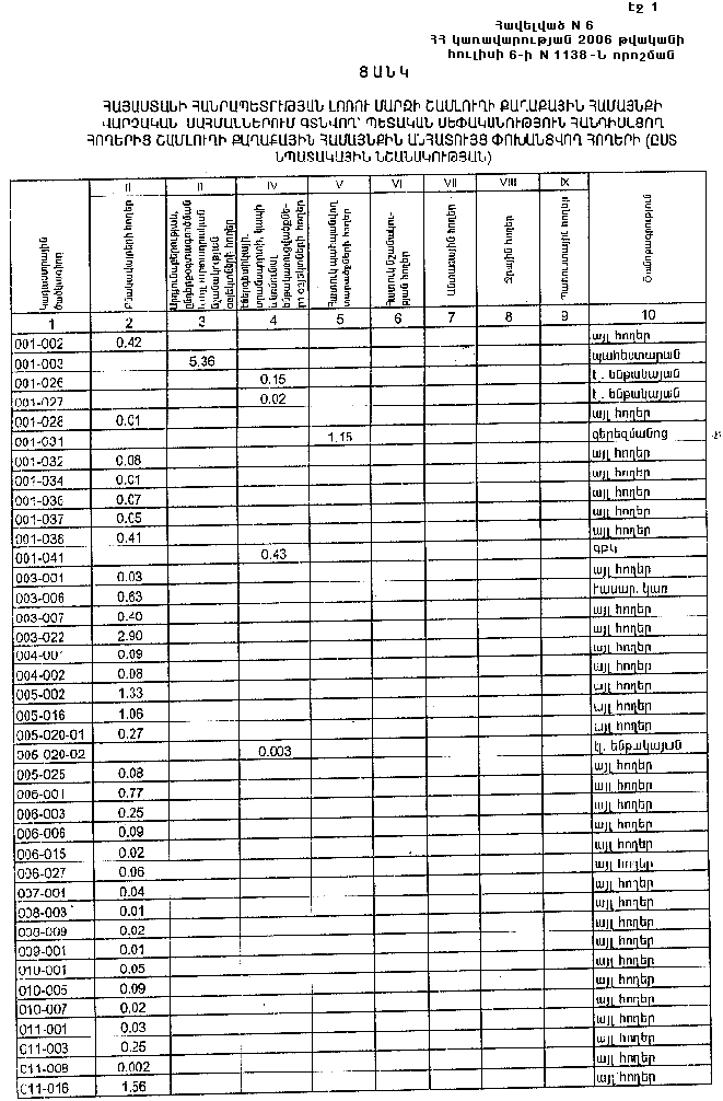 6 հուլիսի 2006 թվականի N 1138-Ն