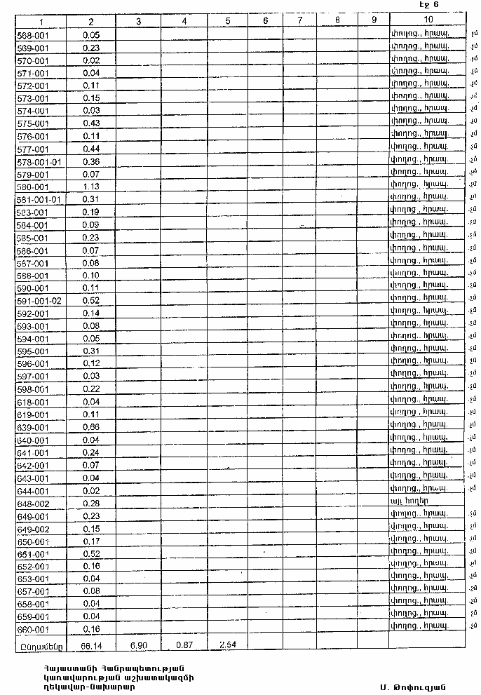 6. Թույլատրել Հայաստանի Հանրապետության կառավարությանն առընթեր անշարժ գույքի կադաստրի պետական կոմիտեի նախագահին Հայաստանի Հանրապետության պետական գեոդեզիական ցանցի հավասարակշռման արդյունքների հիման վրա Հայաստանի Հանրապետության վարչատարածքային միավորների սահմանանիշերի կոորդինատների ժողովածուի հրատարակումից հետո հողային ֆոնդի ընթացիկ հաշվառման ժամանակ Հայաստանի Հանրապետության Լոռու մարզի Շամլուղի քաղաքային համայնքի հողային հաշվեկշռում սահմանված կարգով կատարել համապատասխան փոփոխություններ: