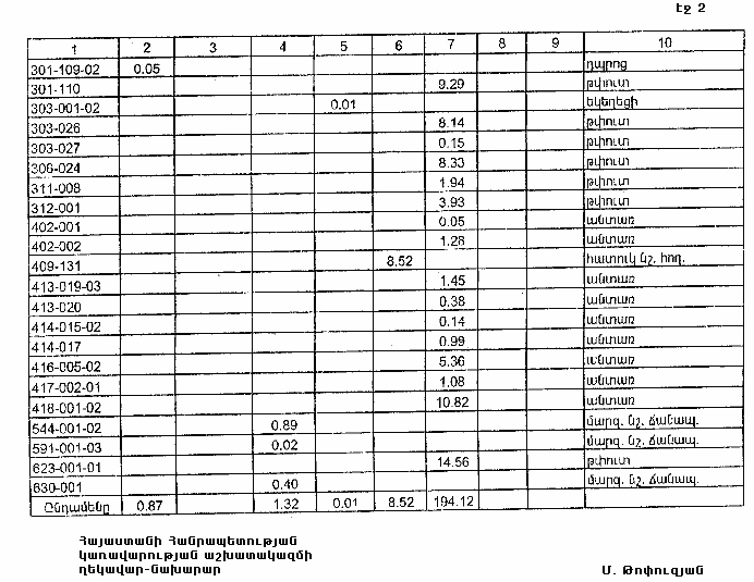 7. Հայաստանի Հանրապետության Լոռու մարզպետին` Հայաստանի Հանրապետության կառավարության 2000 թվականի հոկտեմբերի 23-ի N 656 որոշմամբ սահմանված կարգով` սկզբնական հաշվառման տվյալների հիման վրա ապահովել մարզի տարածքում ընթացիկ հաշվառման աշխատանքների իրականացումը:
