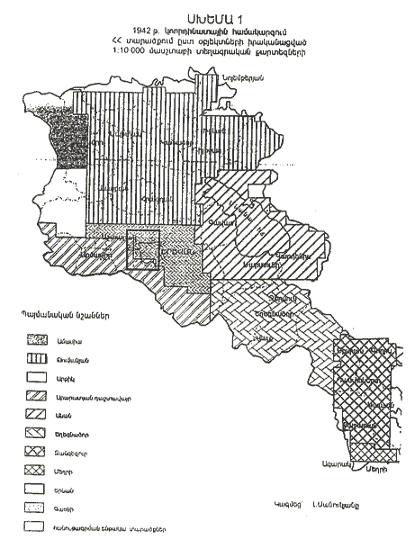 1942 թ. կոորդինատային համակարգում ՀՀ տարածքում ըստ օբյեկտների իրականացված 1:10000 մասշտաբի տեղագրական քարտեզների