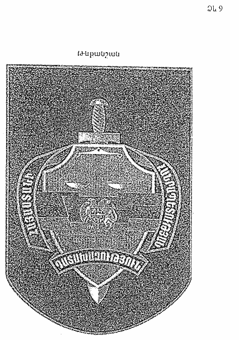 18. Թևքանշանը վահանաձև է, երիզված ծիրանագույն 2 մմ երիզով, Հայաստանի Հանրապետության դատախազության խորհրդանիշի պատկերով` 11 սմ X 7.5 սմ մուգ կապույտ ֆոնի վրա (N 9 ձև): Թևքանշանը կրում են ձախ թևքի արտաքին կողմին, թևքի վերին կետից մինչև նշանը 90 մմ հեռավորությամբ: