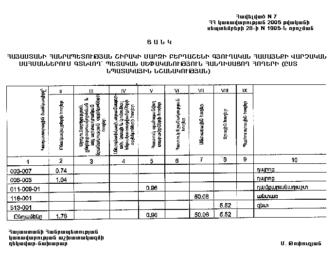 ՀԱՅԱՍՏԱՆԻ ՀԱՆՐԱՊԵՏՈՒԹՅԱՆ ՇԻՐԱԿԻ ՄԱՐԶԻ ԲԵՐԴԱՇԵՆԻ ԳՅՈՒՂԱԿԱՆ ՀԱՄԱՅՆՔԻ ՎԱՐՉԱԿԱՆ ՍԱՀՄԱՆՆԵՐՈՒՄ ԳՏՆՎՈՂ` ՊԵՏԱԿԱՆ ՍԵՓԱԿԱՆՈՒԹՅՈՒՆ ՀԱՆԴԻՍԱՑՈՂ ՀՈՂԵՐԻՑ ԲԵՐԴԱՇԵՆԻ ԳՅՈՒՂԱԿԱՆ ՀԱՄԱՅՆՔԻՆ ԱՆՀԱՏՈՒՅՑ ՓՈԽԱՆՑՎՈՂ ՀՈՂԵՐԻ (ԸՍՏ ՆՊԱՏԱԿԱՅԻՆ ՆՇԱՆԱԿՈՒԹՅԱՆ) | |
