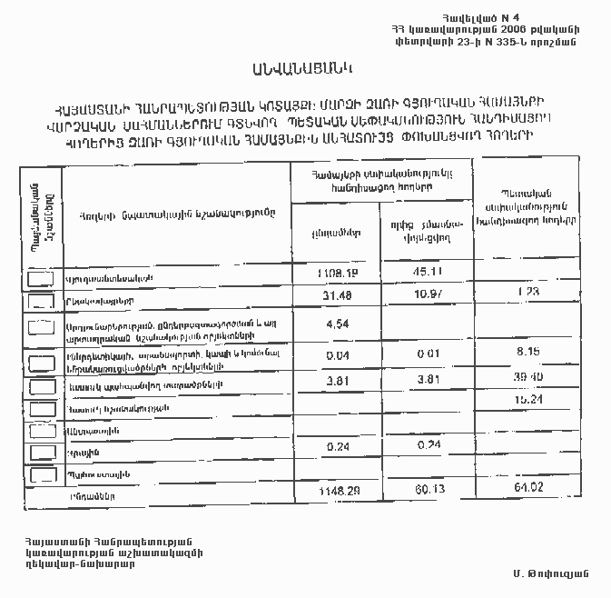23 փետրվարի 2006 թվականի N 335-Ն
