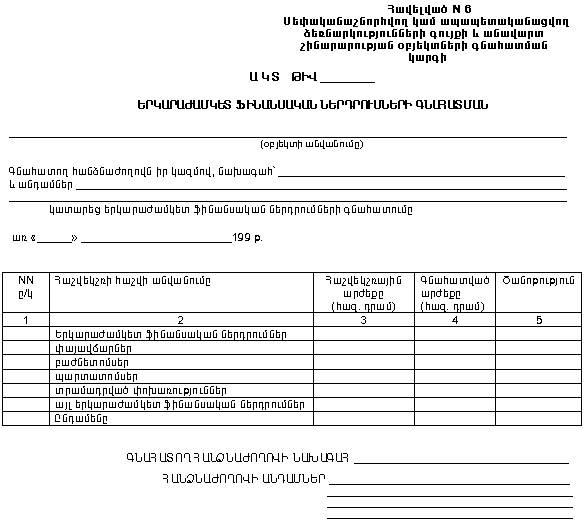 ԵՐԿԱՐԱԺԱՄԿԵՏ ՖԻՆԱՆՍԱԿԱՆ ՆԵՐԴՐՈՒՄՆԵՐԻ ԳՆԱՀԱՏՄԱՆ | |