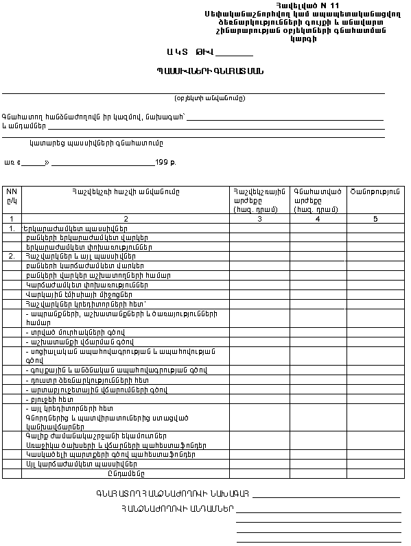 ԴՐԱՄԱԿԱՆ ՄԻՋՈՑՆԵՐԻ, ՀԱՇՎԱՐԿՆԵՐԻ ԵՎ ԱՅԼ ԱԿՏԻՎՆԵՐԻ ԳՆԱՀԱՏՄԱՆ | |