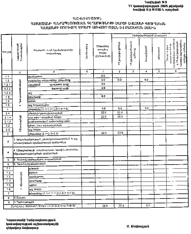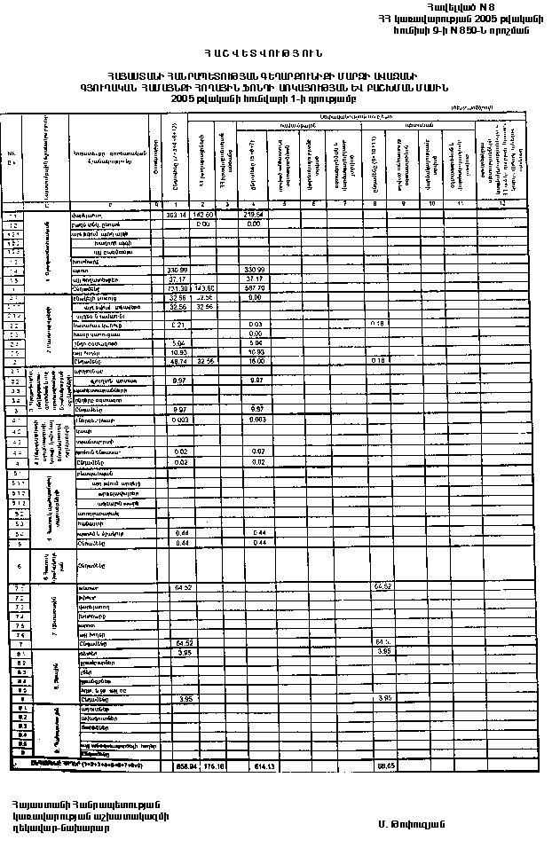 9 հունիսի 2005 թվականի N 850-Ն