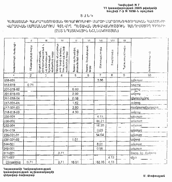7 հուլիսի 2005 թվականի N 1050-Ն