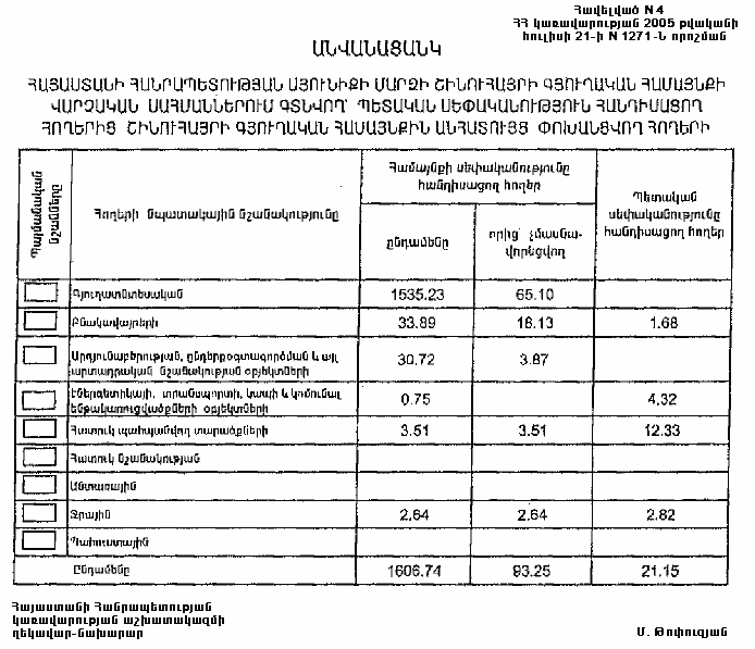 21 հուլիսի 2005 թվականի N 1271-Ն