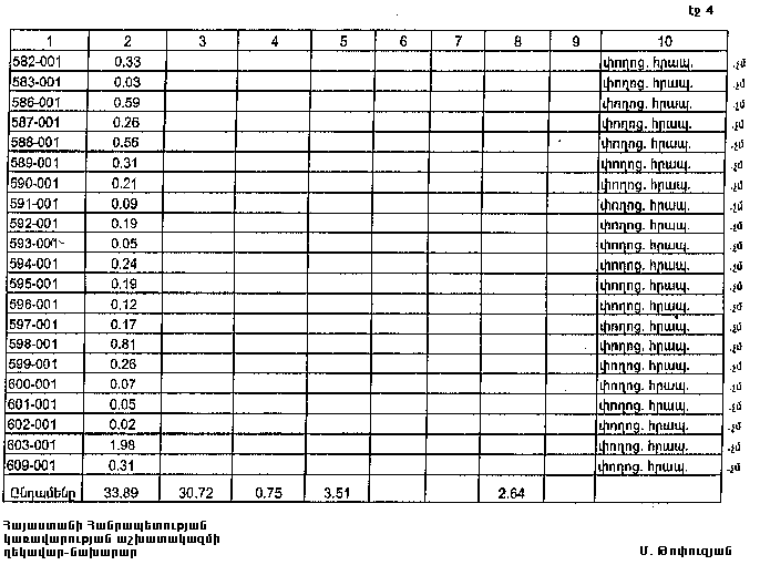 4. Ընդունել ի գիտություն Հայաստանի Հանրապետության Սյունիքի մարզի Շինուհայրի գյուղական համայնքի հողային ֆոնդի առկայության և բաշխման մասին հաշվետվությունը՝ 2005 թվականի հունվարի 1-ի դրությամբ՝ համաձայն NN 8 և 9 հավելվածների: