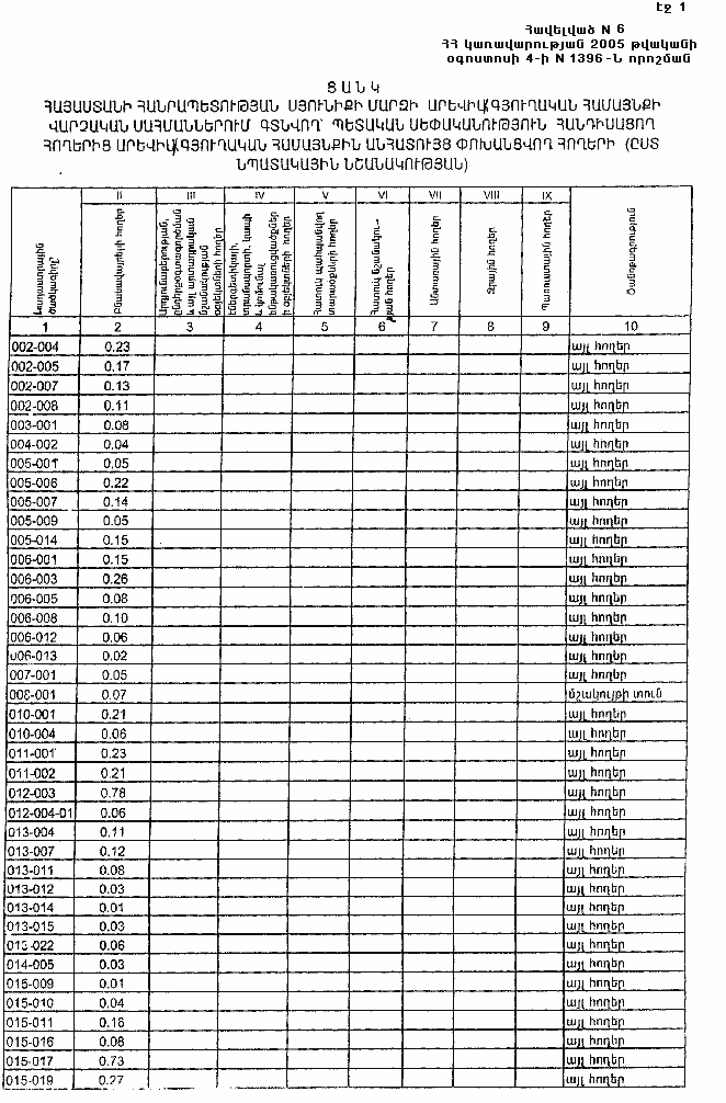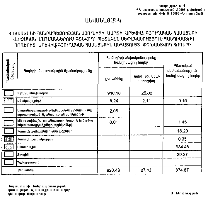 4 օգոստոսի 2005 թվականի N 1396-Ն