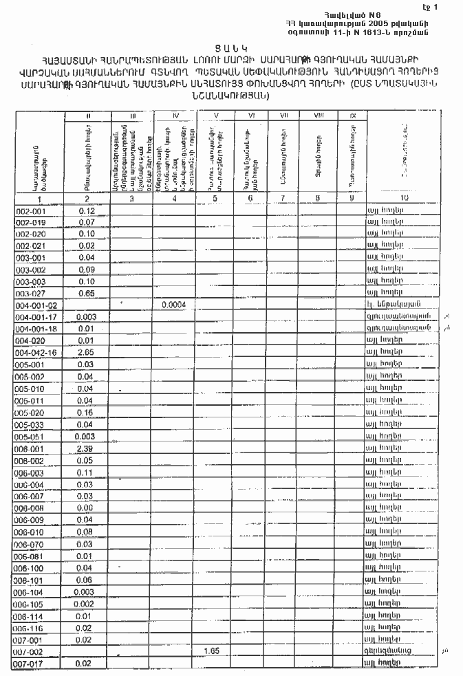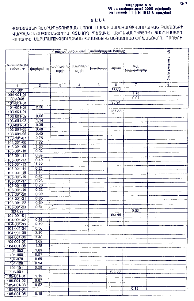 11 օգոստոսի 2005 թվականի N 1613-Ն