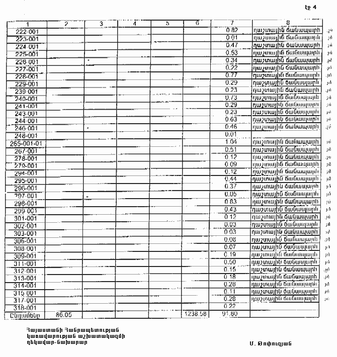 4. Ընդունել ի գիտություն Հայաստանի Հանրապետության Լոռու մարզի Սարահարթի գյուղական համայնքի հողային ֆոնդի առկայության և բաշխման մասին հաշվետվությունը` 2005 թվականի հունվարի 1-ի դրությամբ` համաձայն NN 8 և 9 հավելվածների: