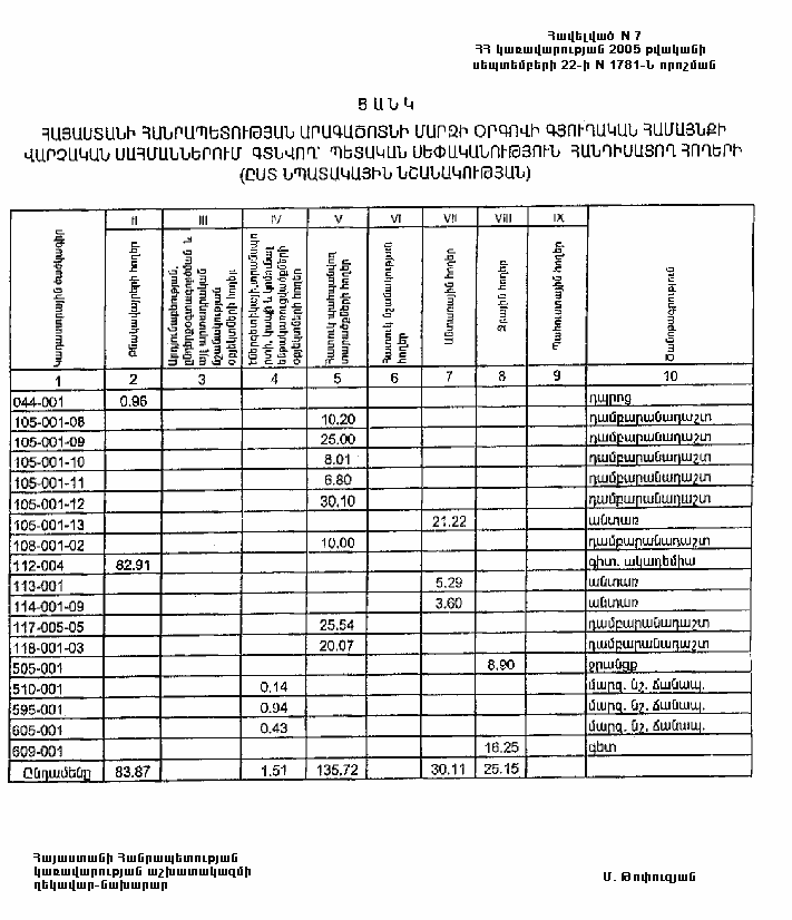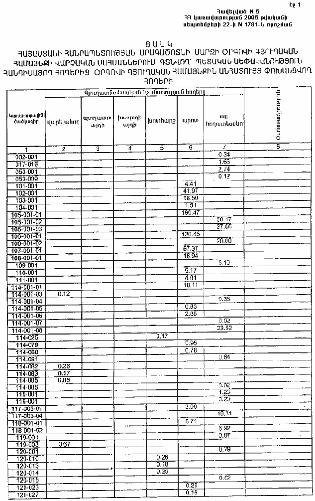 22 սեպտեմբերի 2005 թվականի N 1781-Ն