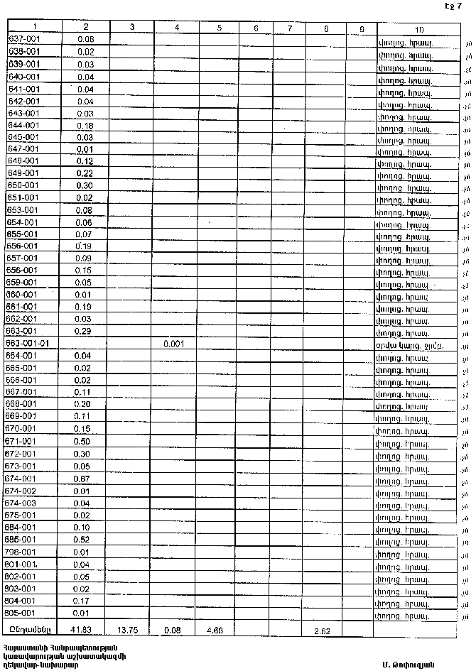 7. Հայաստանի Հանրապետության Լոռու մարզպետին` Հայաստանի Հանրապետության կառավարության 2000 թվականի հոկտեմբերի 23-ի N 656 որոշմամբ սահմանված կարգով` սկզբնական հաշվառման տվյալների հիման վրա ապահովել մարզի տարածքում ընթացիկ հաշվառման աշխատանքների իրականացումը: