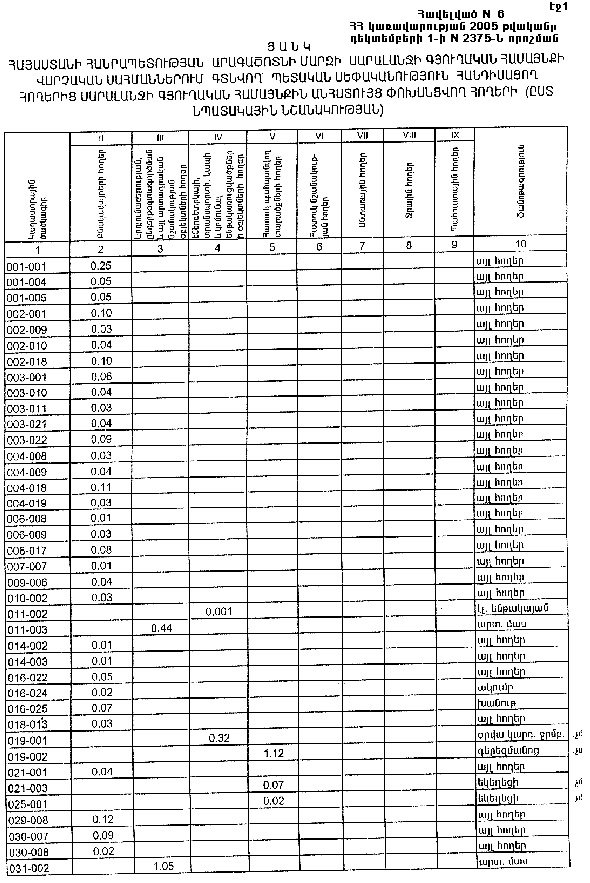 1 դեկտեմբերի 2005 թվականի N 2375-Ն