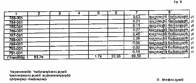 6. Թույլատրել Հայաստանի Հանրապետության կառավարությանն առընթեր անշարժ գույքի կադաստրի պետական կոմիտեի նախագահին Հայաստանի Հանրապետության պետական գեոդեզիական ցանցի հավասարակշռման արդյունքների հիման վրա Հայաստանի Հանրապետության վարչատարածքային միավորների սահմանանիշերի կոորդինատների ժողովածուի հրատարակումից հետո հողային ֆոնդի ընթացիկ հաշվառման ժամանակ Հայաստանի Հանրապետության Տավուշի մարզի Նորաշենի գյուղական համայնքի հողային հաշվեկշռում սահմանված կարգով կատարել համապատասխան փոփոխություններ: