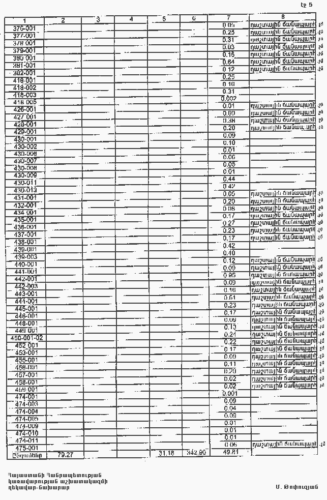 7. Հայաստանի Հանրապետության Տավուշի մարզպետին՝ Հայաստանի Հանրապետության կառավարության 2000 թվականի հոկտեմբերի 23-ի N 656 որոշմամբ սահմանված կարգով՝ սկզբնական հաշվառման տվյալների հիման վրա ապահովել մարզի տարածքում ընթացիկ հաշվառման աշխատանքների իրականացումը: