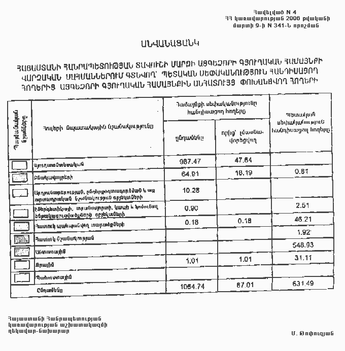 4. Ընդունել ի գիտություն Հայաստանի Հանրապետության Տավուշի մարզի Այգեձորի գյուղական համայնքի հողային ֆոնդի առկայության և բաշխման մասին հաշվետվությունը՝ 2005 թվականի հունվարի 1-ի դրությամբ՝ համաձայն NN 8 և 9 հավելվածների: