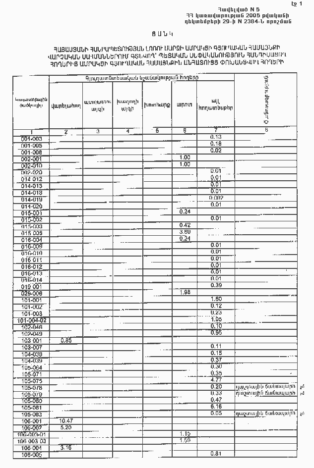 29 դեկտեմբերի 2005 թվականի N 2384-Ն