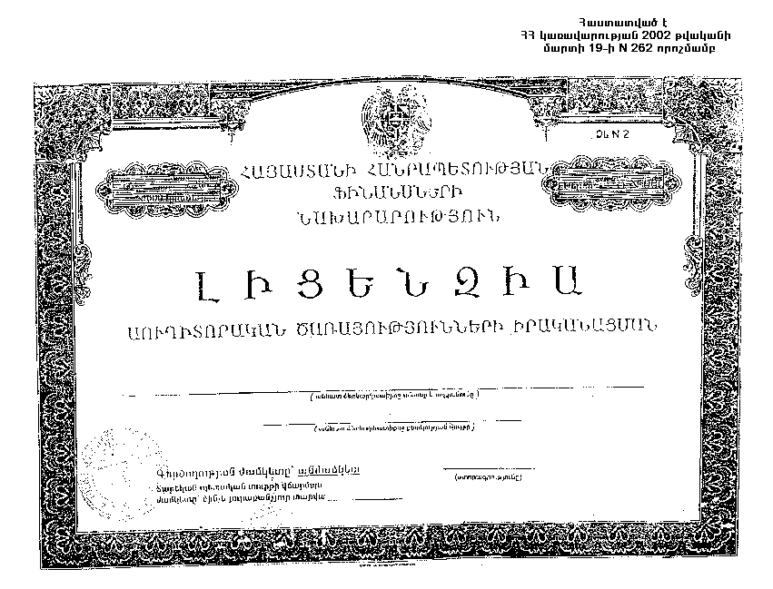 է) լիցենզավորող մարմնի լիազորված անձի ստորագրությունը և այդ մարմնի` Հայաստանի Հանրապետության զինանշանի պատկերով կնիքի դրոշմը: