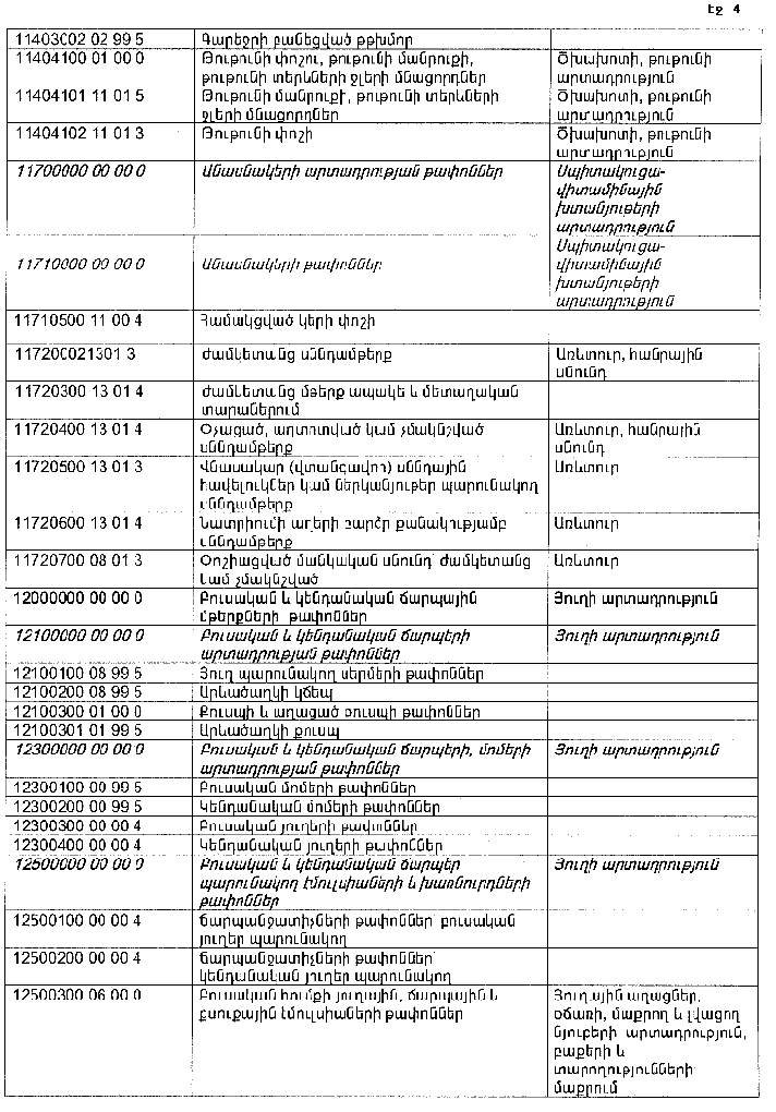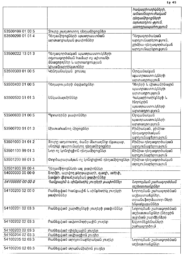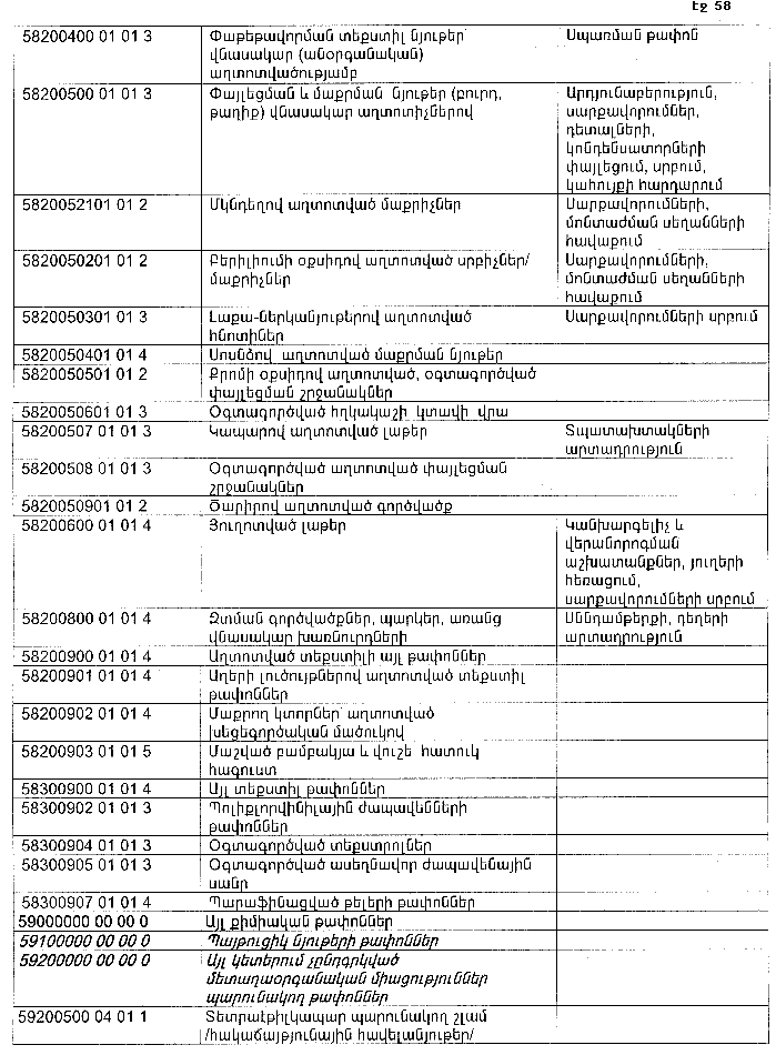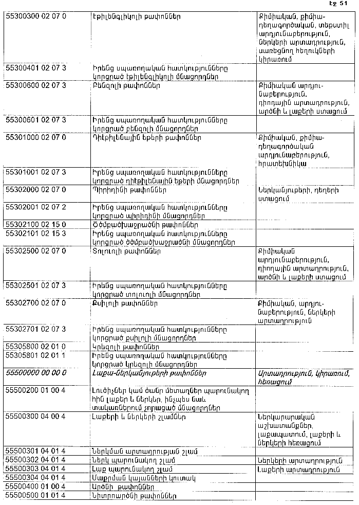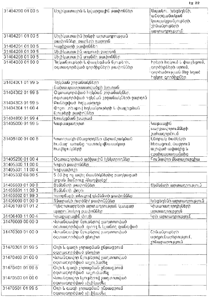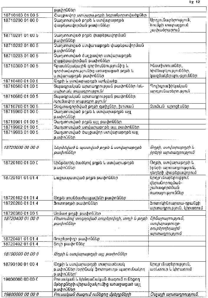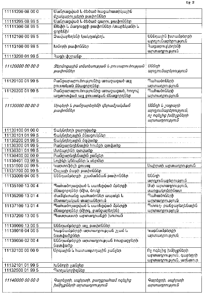 ՀԱՅԱՍՏԱՆԻ ՀԱՆՐԱՊԵՏՈՒԹՅԱՆ ՏԱՐԱԾՔՈՒՄ ԳՈՅԱՑՈՂ ԱՐՏԱԴՐՈՒԹՅԱՆ (ԱՅԴ ԹՎՈՒՄ` ԸՆԴԵՐՔՕԳՏԱԳՈՐԾՄԱՆ) ԵՎ ՍՊԱՌՄԱՆ ԹԱՓՈՆՆԵՐԻ ՑԱՆԿԸ ՀԱՍՏԱՏԵԼՈՒ ՄԱՍԻՆ