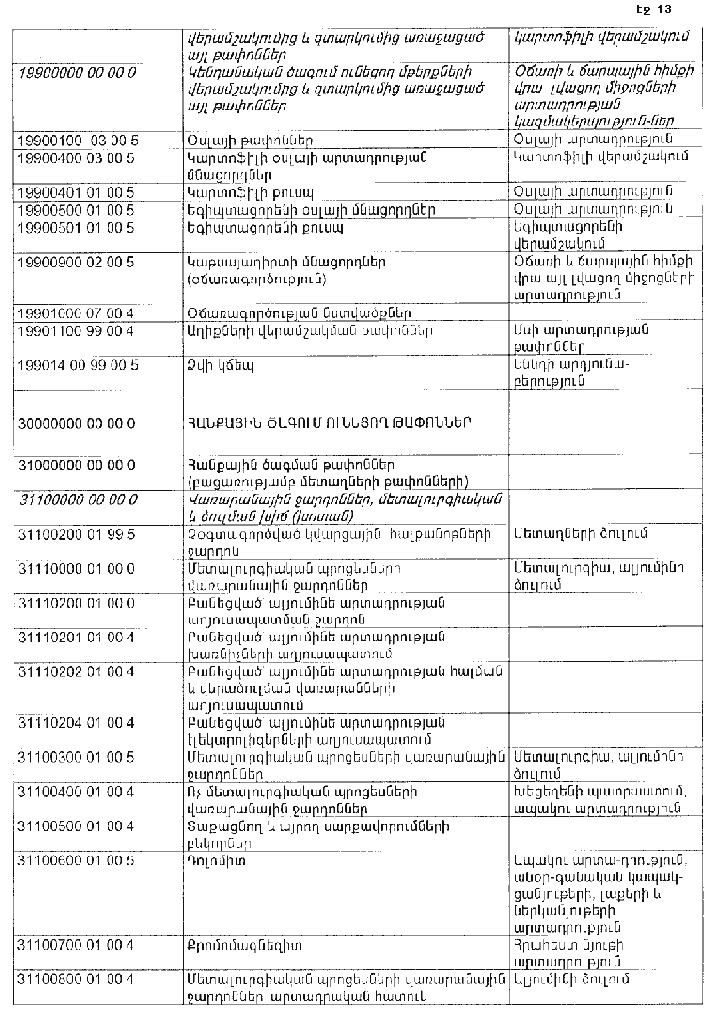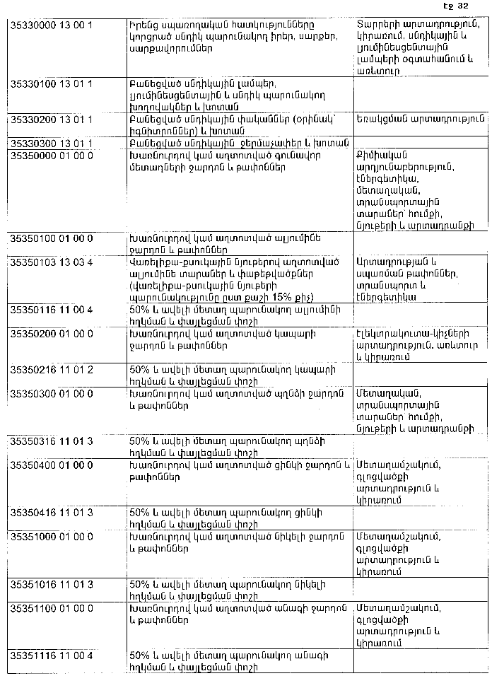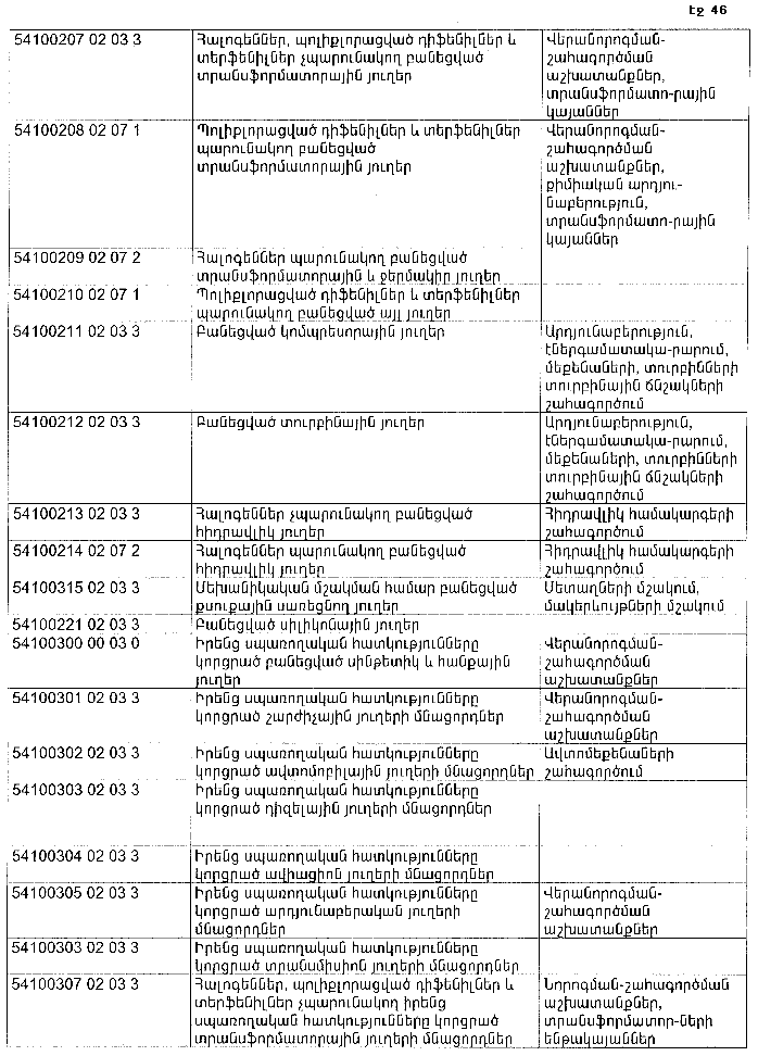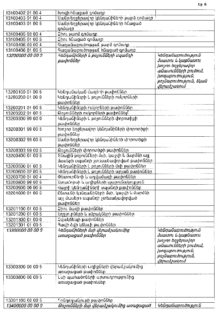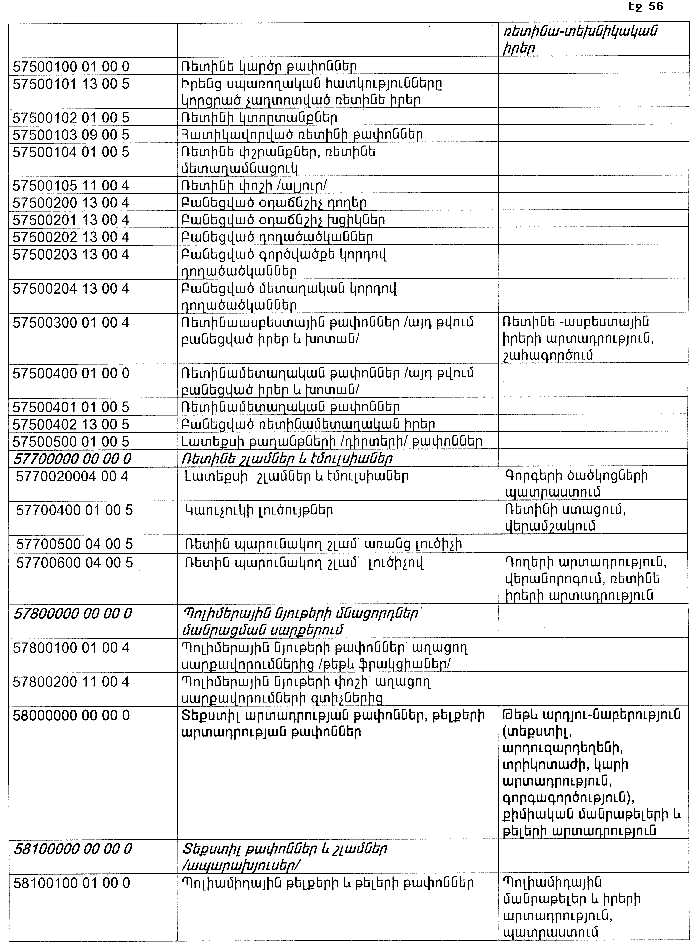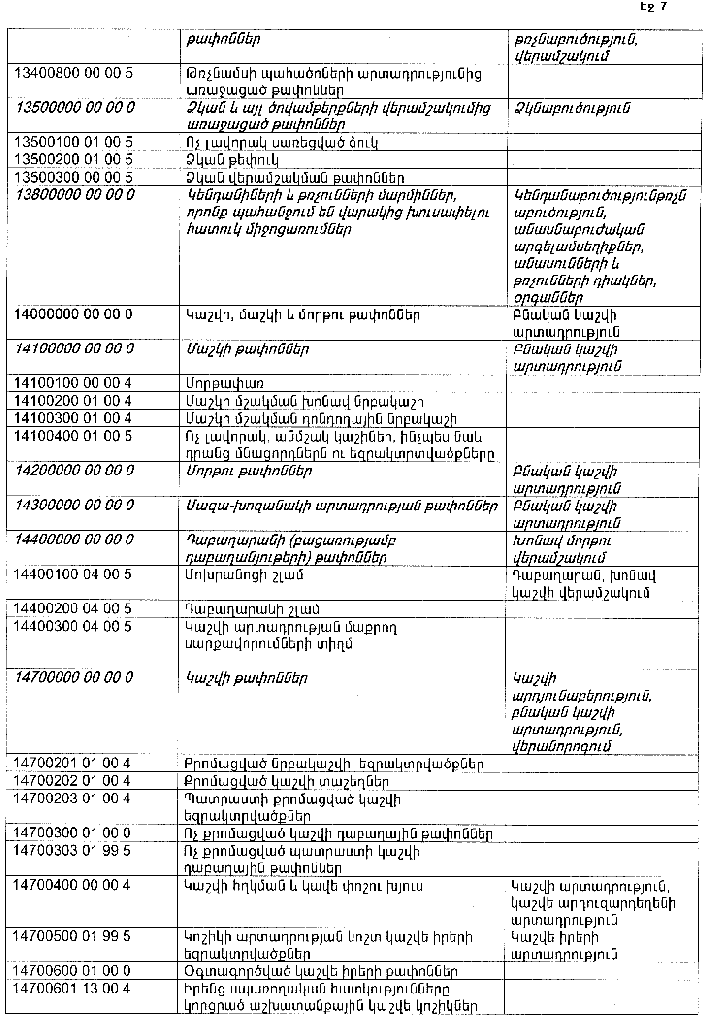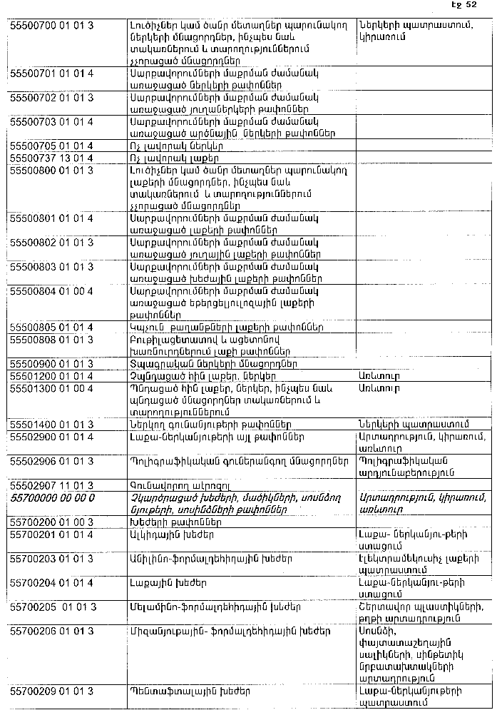 ՀԱՅԱՍՏԱՆԻ ՀԱՆՐԱՊԵՏՈՒԹՅԱՆ ՏԱՐԱԾՔՈՒՄ ԳՈՅԱՑՈՂ ԱՐՏԱԴՐՈՒԹՅԱՆ (ԱՅԴ ԹՎՈՒՄ` ԸՆԴԵՐՔՕԳՏԱԳՈՐԾՄԱՆ) ԵՎ ՍՊԱՌՄԱՆ ԹԱՓՈՆՆԵՐԻ ՑԱՆԿԸ ՀԱՍՏԱՏԵԼՈՒ ՄԱՍԻՆ