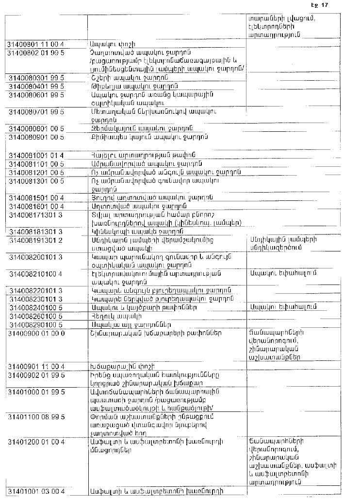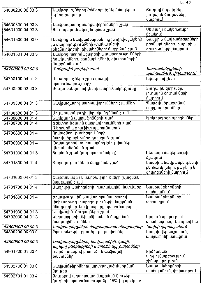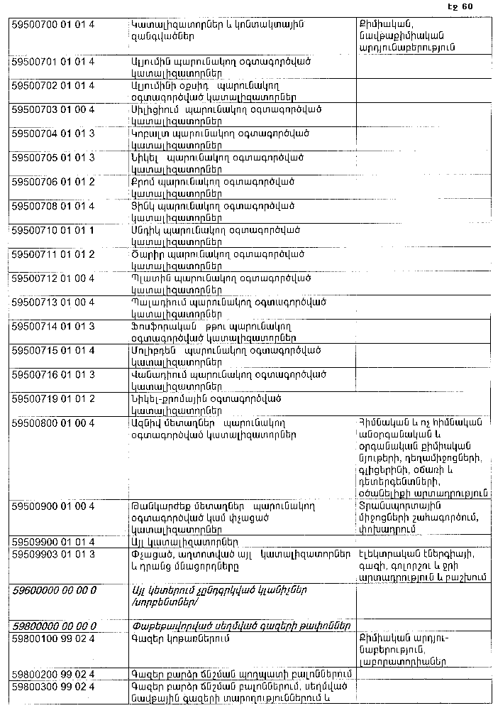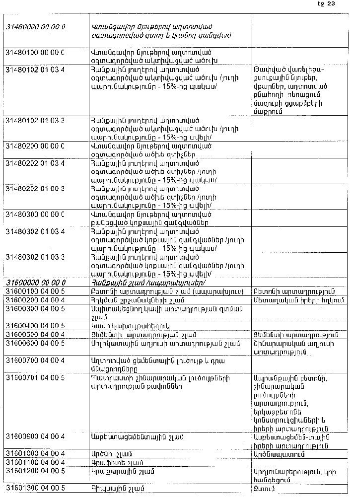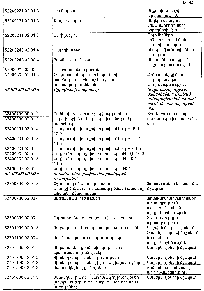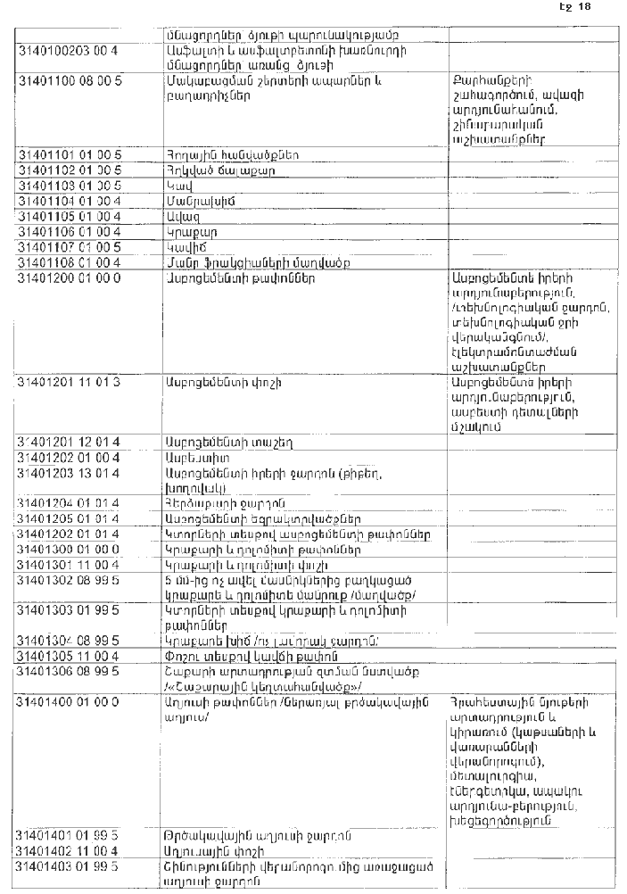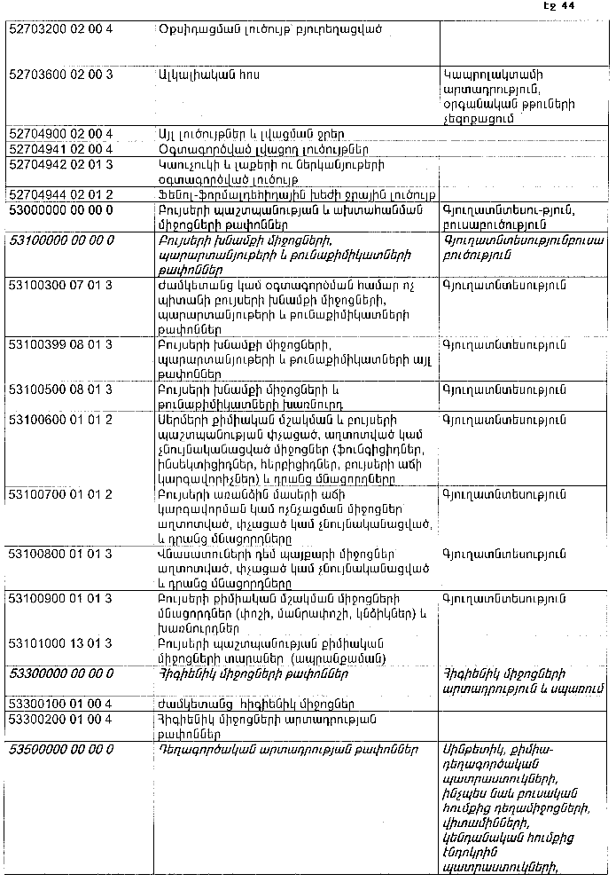 ՀԱՅԱՍՏԱՆԻ ՀԱՆՐԱՊԵՏՈՒԹՅԱՆ ՏԱՐԱԾՔՈՒՄ ԳՈՅԱՑՈՂ ԱՐՏԱԴՐՈՒԹՅԱՆ (ԱՅԴ ԹՎՈՒՄ` ԸՆԴԵՐՔՕԳՏԱԳՈՐԾՄԱՆ) ԵՎ ՍՊԱՌՄԱՆ ԹԱՓՈՆՆԵՐԻ ՑԱՆԿԸ ՀԱՍՏԱՏԵԼՈՒ ՄԱՍԻՆ