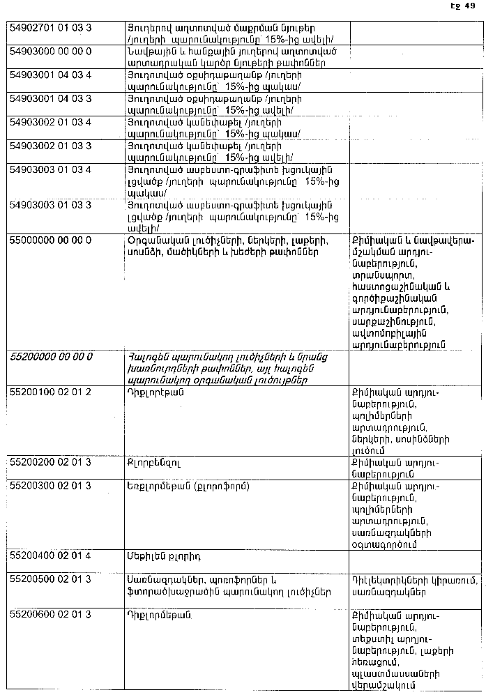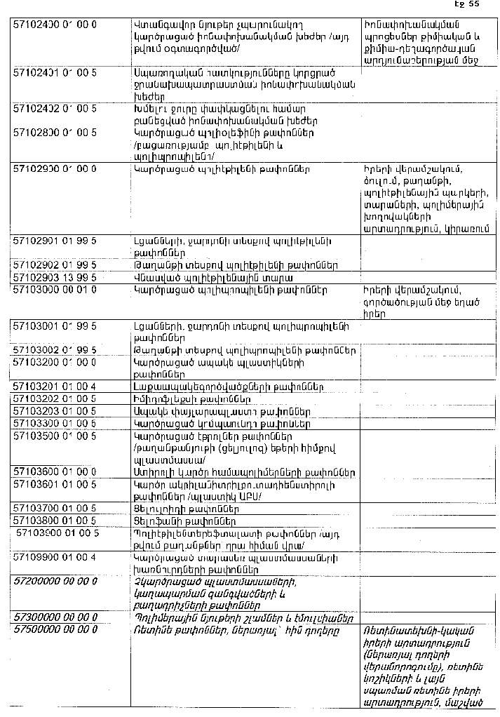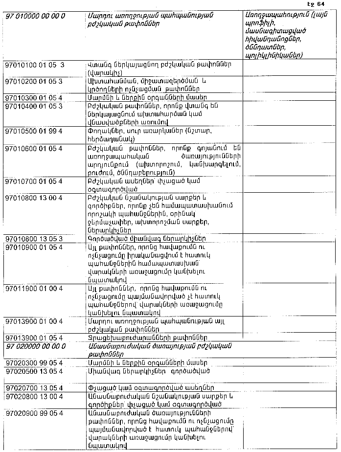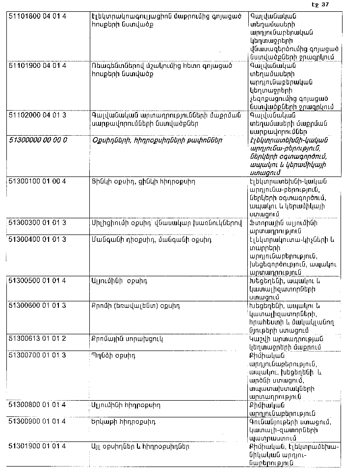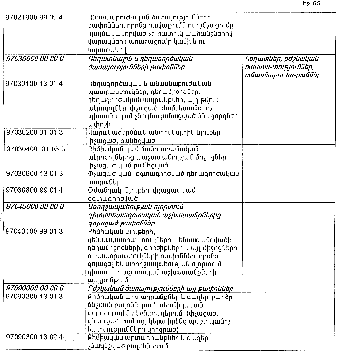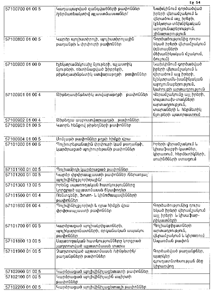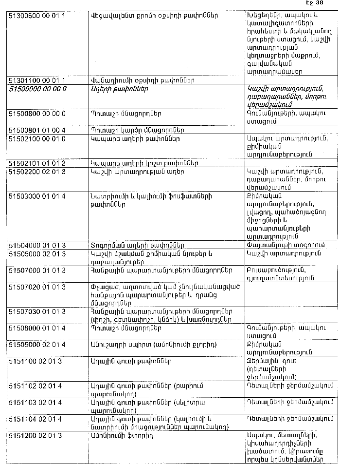 ՀԱՅԱՍՏԱՆԻ ՀԱՆՐԱՊԵՏՈՒԹՅԱՆ ՏԱՐԱԾՔՈՒՄ ԳՈՅԱՑՈՂ ԱՐՏԱԴՐՈՒԹՅԱՆ (ԱՅԴ ԹՎՈՒՄ` ԸՆԴԵՐՔՕԳՏԱԳՈՐԾՄԱՆ) ԵՎ ՍՊԱՌՄԱՆ ԹԱՓՈՆՆԵՐԻ ՑԱՆԿԸ ՀԱՍՏԱՏԵԼՈՒ ՄԱՍԻՆ