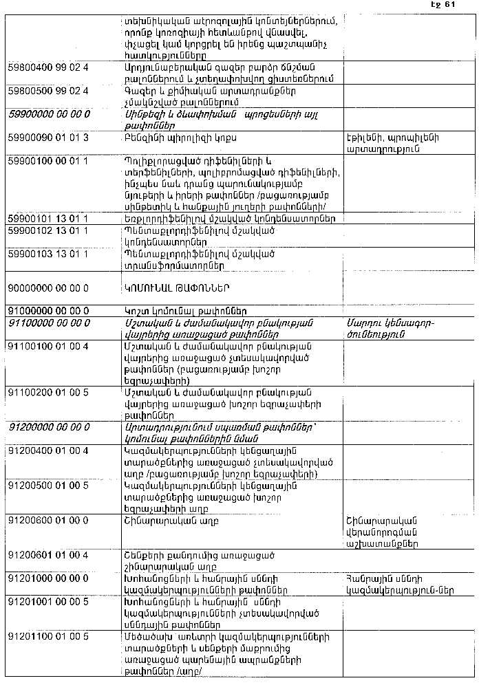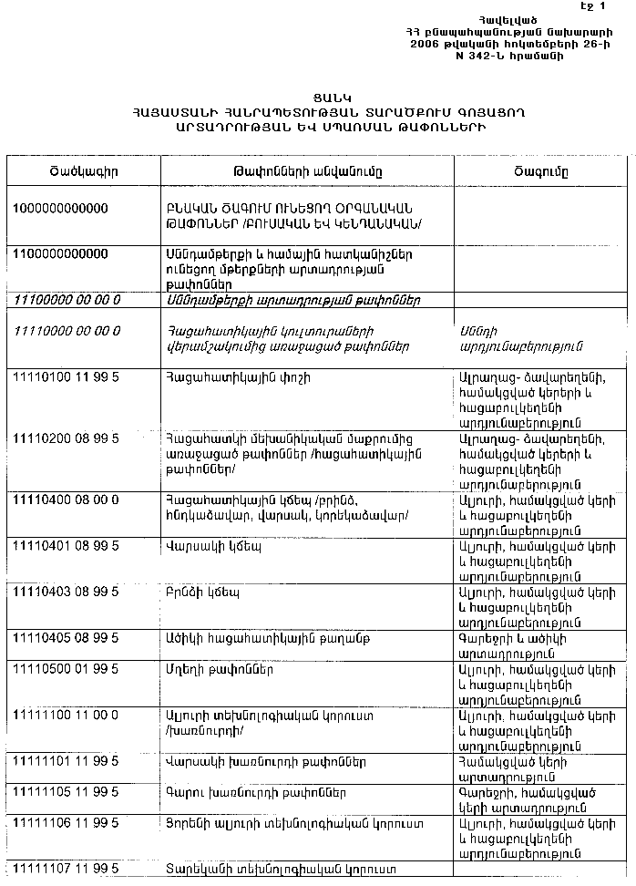 ՀԱՅԱՍՏԱՆԻ ՀԱՆՐԱՊԵՏՈՒԹՅԱՆ ՏԱՐԱԾՔՈՒՄ ԳՈՅԱՑՈՂ ԱՐՏԱԴՐՈՒԹՅԱՆ (ԱՅԴ ԹՎՈՒՄ` ԸՆԴԵՐՔՕԳՏԱԳՈՐԾՄԱՆ) ԵՎ ՍՊԱՌՄԱՆ ԹԱՓՈՆՆԵՐԻ(վերնագիրը փոփ. 20.08.15 N 244-Ն)