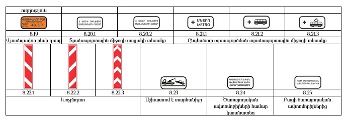 Վարորդի ցանկությամբ կարող են տեղադրվել նաև հետևյալ ճանաչման նշանները`