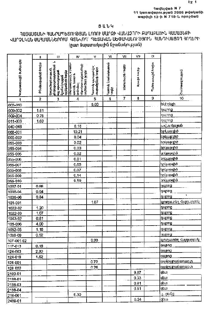 7. Հայաստանի Հանրապետության Լոռու մարզպետին` Հայաստանի Հանրապետության կառավարության 2000 թվականի հոկտեմբերի 23-ի N 656 որոշմամբ սահմանված կարգով` սկզբնական հաշվառման տվյալների հիման վրա ապահովել մարզի տարածքում ընթացիկ հաշվառման աշխատանքների իրականացումը: