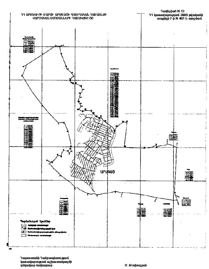 13) Արագածի գյուղական համայնքի վարչական սահմանների նկարագիրը՝ համաձայն NN 13 և 131 հավելվածների,