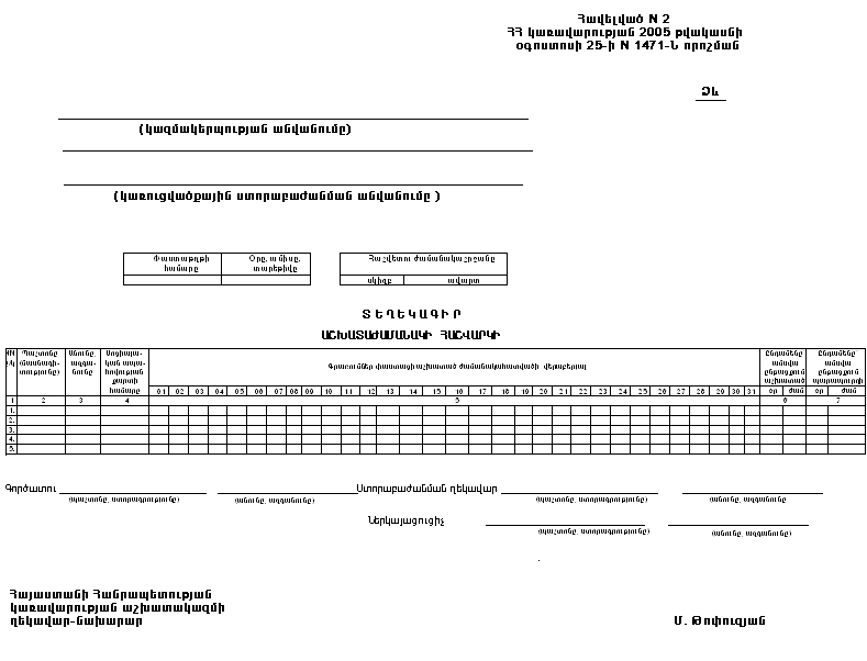 բ) աշխատաժամանակի հաշվարկի տեղեկագրի ձևը` համաձայն N 2 հավելվածի: