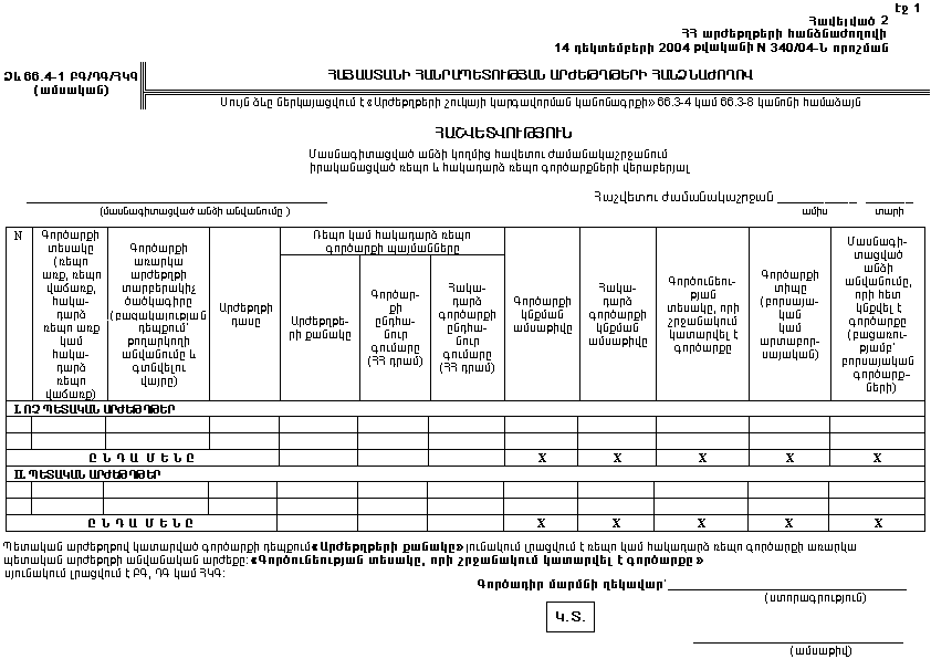 (բ) 66.3-4(դ) և 66.3-8(բ)(3) կանոններում «հաշվետվության» բառերից հետո լրացնել «66.4-1ԲԳ/ԴԳ/ՀԿԳ,» բառերը.
