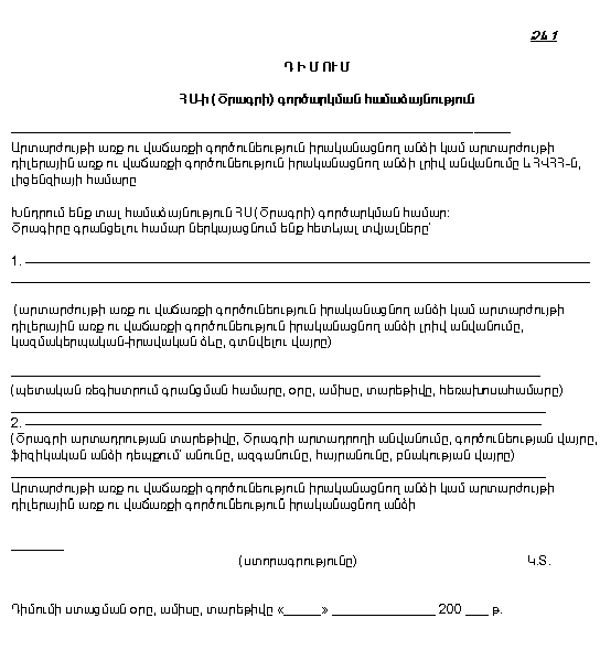 ԱՐՏԱՐԺՈՒՅԹԻ ԱՌՔ ՈՒ ՎԱՃԱՌՔԻ ԵՎ ԱՐՏԱՐԺՈՒՅԹԻ ԴԻԼԵՐԱՅԻՆ ԱՌՔ ՈՒ ՎԱՃԱՌՔԻ ԳՈՐԾՈՒՆԵՈՒԹՅՈՒՆ ԻՐԱԿԱՆԱՑՆՈՂ ԱՆՁԱՆՑ ԿՈՂՄԻՑ ԿԻՐԱՌՎՈՂ ՀՍԿԻՉ-ԴՐԱՄԱՐԿՂԱՅԻՆ ՄԵՔԵՆԱՆԵՐԻ ԵՎ ԾՐԱԳԻՐ ՊԱՐՈՒՆԱԿՈՂ ՀԱՄԱԿԱՐԳՉԱՅԻՆ ՍԱՐՔԱՎՈՐՈՒՄՆԵՐԻ ԳՐԱՆՑՄԱՆ ԿԱՐԳԸ ԵՎ ՇԱՀԱԳՈՐԾՄԱՆ ԿԱՆՈՆՆԵՐԸ