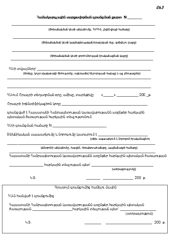 10. Հարկային տեսչությունը փոխանակման կետին տալիս է ՀՍ-ի գրանցման քարտի մեկ օրինակ՝ համաձայն N 3 ձևի: